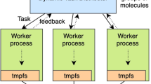 The results generated by sTDA were analyzed to identify compounds with strong UV/vis absorption characteristics. The first excitation of a molecule corresponds to its largest wavelength of absorption, as wavelength is inversely proportional to excitation energy as a consequence of the Planck–Einstein relation. Accordingly, the database of sTDA results was queried to select compounds whose first excitation possess a large oscillator strength, as shown in the bottom row of Fig. 2. A total of 1,302 compounds were found to exhibit a first excitation with an oscillator strength f > 0.8. 200 of these compounds were randomly selected and subjected to full time-dependent density functional theory (TD-DFT) calculations, using the NWChem package23, in order to validate the sTDA results. Geometry optimizations used the B3LYP functional and 6–31 + G* basis sets while TD-DFT computations employed the LRC-wPBEh functional and 6–311 + G* data sets. 185 out of the 200 compounds were found to converge, from which a number of properties were retrieved at each stage of the workflow; such properties included geometries, total energies, dipole moments, oscillator strengths, transition dipole moments, and orbital energies. The corresponding data were subsequently added to the JSON tree with a key and some tags, where the key describes the stage of the calculation that generated the data and the tags are sub-dictionaries of arrays of the parsed information (e.g. all of the TD-DFT parsed information were added under an ‘nwchem’ tag).