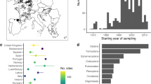River macroinvertebrates are collected from June to September each year, when flows are likely to be relatively low. Occasionally, for operational or weather-related reasons, surveys may occur outside of this period. Two approached are used. The first, and principal methodology used (96.7% of surveys in dataset), is by kick-sampling with a standard pond net (230 × 225 mm frame with 1 mm mesh). In this approach a semi-quantitative two-minute macroinvertebrate kick-sample is collected from the riverbed preferably from the faster flowing riffle habitats19. A further one-minute hand search is carried out to locate macroinvertebrates that remain attached to the underside of the cobbles19. Depending upon the proportion of various habitats (e.g. glides, margins, pools), time may also be spent sampling these habitats with operators moving location approximately every 4 to 5-seconds over a 50 m stretch. Similar studies in Ireland and elsewhere have found that this sampling approach is sufficient to achieve a suitable representation of taxa for bioassessment of lotic habitats20,21. Occasionally, when the substratum (e.g. bedrock) or flow conditions make kick-sampling difficult, or the abundance of macroinvertebrates collected is extremely low (e.g. toxic pollution, see Kelly-Quinn et al.7), it may have been necessary to spend a longer amount of time sampling the river to accumulate a sufficient diversity and abundance of macroinvertebrates. In fast flowing steep rivers, it may have been necessary to kick deeper into the riverbed to disturb the organisms and include more of the marginal areas to ensure taxa are recorded19. This sampling approach requires avoidance of obvious localized disturbance (e.g. cattle access points) which may adversely influence the sample taken.