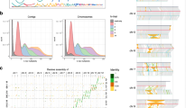 The read coverage ranged between ~36 X in the pentaploid CUR and 44.4 X in the triploid CHA for the Illumina reads (Table 1). The read coverage for the ADG1 genome was calculated with linked and long reads and it had an average read coverage of 50x (Table 1). The k-mer frequencies were calculated for each of the genomes (Supplementary Figs. 1–6). In general, there is a tendency towards bimodal distributions. In addition, the heterozygosity of the genomes ranges between 3.52% (in ADG1) and 12.02% (in CUR) (Table 1). The heterozygosity is confirmed by the k-mer frequency of the genomes and the bimodal distributions, which has previously been reported for polyploid genomes45.