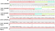 The genomic raw PacBio sequencing data are available in the NCBI Sequence Read Archive (SRA) database under accession numbers SRR754912941 and SRR754913042, and the Illumina and Hi-C sequencing data are deposited under SRR761555343 and SRR763152344, which helped us in our genome assembly (Online-only Table 1). Raw whole-genome resequencing reads for 62 strains can be downloaded from the NCBI database under Bioproject accession SRP17354745, and the resequencing data of the other 22 cultivars are also accessible via the NCBI SRA46,47 (Online-only Table 2). The latest assembly and annotations of the ‘China Antique’ lotus variety is deposited in the Nelumbo Genome Database (Download links: http://nelumbo.biocloud.net/downloadData/download?path = NNU.genomic.fa and http://nelumbo.biocloud.net/downloadData/download?path = NNU.gff3). Additionally, this Whole Genome Shotgun project has been deposited at DDBJ/ENA/GenBank under the accession DUZY00000000, and the version described in this paper is version DUZY0100000048. Improved gene and repeat (including transposable element) predictions (GFF3), coding and peptide sequences (FASTA), gene and transcript functional annotations, gene expression and coexpression profiles, SNP and InDel variations, phenotypic traits and images for 88 lotus strains have been uploaded into the Figshare database49 and deployed in the newly developed Nelumbo Genome Database (http://nelumbo.biocloud.net).