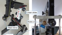 The image registration step makes use of the phase correlation function, a well-established approach for calculating the relative offset between two images44. The phase correlation was calculated for all possible image pairs of a dataset to establish an estimation of the translational alignment between each image pair, but the key step in creating high-quality mosaic images is the decomposition of each image into 12 horizontal slices or sub-images and the calculation of the relative alignment dij (relating to the sub-images with indices i and j)31,45. This approach was designed to analyze specifically the characteristic motion-induced image deformation artifacts that arise from the image formation process of the HRT-RCM microscope.