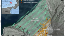 Subaerial deposit of lava flows and proximal fallout: volume 217.4 ± 6.6 Mm3 (voids in the lava field and submerged portion of the two deltas are not considered), subaerial deposition rate 29.5 m3/s. In a previous survey carried out on 27/9, 35.8 ± 3.0 Mm3 and 59.2 m3/s were recorded26. Moreover, considering the volume difference between the 27/09 survey26 and the post-event survey, the resulting subaerial deposition rate is 27.2 m3/s.