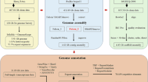 The pipelines based on ab initio prediction, transcript-assisted strategies, and protein alignment were used to predict protein-coding genes. Seventeen RNA-Seq datasets from various tissues, including hindgut, foregut, eye, fin, gill, head, kidney, liver, muscle, bladder, brain, skin, and spleen, were retrieved from the NCBI repository30,31,32,33,34,35,36,37,38,39,40,41,42,43,44,45,46 for the prediction. Firstly, BRAKER v3.0.847 was employed for an ab initio gene structure prediction, utilizing the transcript evidence derived from the alignment of RNA-seq reads by HISAT v2.2.148 against the repeat-masked genome assembly. The second pipeline involved both de novo and genome-guided transcriptome assembly strategies by Trinity v2.15.149 prior to protein-coding gene prediction. Then the two versions of transcriptome assemblies were combined and the gene structures were predicted by using the PASA pipeline v2.5.350. For protein alignment-based prediction, the protein sequences from the UniProt (https://www.uniprot.org) were input to miniport v0.13-r262-dirty51 with default parameters to generate the protein-base file. Ultimately, EVidenceModeler v2.0.052 was used to produce the final gene model by merging the output resulting from PASA, BRAKER, and miniprot with the weights in Table 4. Overall, our approach, combining the ab initio prediction, transcript-based strategies, and protein alignment, predicted a total of 37,418 protein-coding genes within our genome assembly. These genes exhibited an average of 7.78 exons and an average exon length of 160 base pairs (Table 5). The BUSCO score for the predicted genes is 91.2%, indicating a high level of completeness in the predictions. For gene functional annotation, we used eggNOG-mapper v2.1.1253 and InterProScan v5.69-101.054 for ortholog- and protein domain-based annotations, which yielded 24,734 (66.1%) and 29,667 (79.3%) hits, respectively. By integrating the results from both annotation methods, a total of 30,278 (80.9%) genes were successfully assigned with functional annotations.