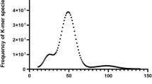 The genome size and heterozygosity of black carp were analysed using the available Illumina sequencing data (NCBI SRA ID SRR14181237)12,15. The Illumina short reads served as input for Jellyfish v2.3.017, from which a k-mer (k = 21) frequency distribution was obtained, as depicted in Fig. 1. After discarding the k-mers with abnormal depth, the genome size was estimated by using the formula genome size = k-mers number/average depth of k-mers. Consequently, the estimated genome size of black carp was 765.00 Mb, with a heterozygosity rate of 0.355%.