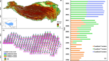 For the supervised large-scale land cover mapping, the accurate and sufficient training samples are critically important35. Referring to the study of Yang and Huang30, the visual interpretation method and automatic sample extraction via existing LC products were both used to collect training samples in this study. Firstly, since annual CLCD achieved a higher overall accuracy than other global land cover products and has been widely used in various studies in China30, it was taken as a valuable source for collecting samples. The pixels without land cover change during 1990–2022 were extracted based on this dataset. Then, the CLP region was divided into 986 grids with 30 km sides, and 30 samples were randomly collected within each grid from pixels without land cover change in last step. In such a way, we obtained a total of 29,580 candidate samples of the CLP. Thirdly, if NDVI time-series curve of a candidate sample was stable (there is no significant change trend in annual 25th, 50th, 75th percentile NDVI time-series), and its land cover type was the same as that visually interpretated using GF-2, BJ-2, Google Earth images from 2020 to 2022, this sample will be used to input classification model. For grid with less than 5 final samples, we visually interpretated some samples based on GF-2, BJ-2, Google Earth images and Landsat NDVI time-series trajectory in order to ensure uniform spatial distribution and diversity of all samples. It should be noted that we used Google Maps photo sphere to distinguish similar land covers (e.g. bare soil and dried grassland) when Google Earth images are not helpful for identifying land cover types. Finally, a total of 17,448 samples were finally determined from potential sample pool, and the training and testing samples at a ratio of 7:3 were illustrated in Fig. 2.