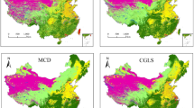 Based on different land cover products, we analyzed the dynamic changes in the area proportions of various land cover types from 1990 to 2022. As shown clearly in Fig. 7, the changes of cropland, grassland, and barren land in YRCC_LPLC are more pronounced compared to other products. Over 32 years, the proportion of cropland in YRCC_LPLC decreased by 13.58% of the whole CLP, whereas the cropland proportion in CLCD decreased by only 3.69%. The proportions in Globeland30 and ESACCI remained relatively stable, while MCD12Q1 even showed an increasing trend in cropland area. Similarly, the proportion of grassland in YRCC_LPLC increased by 14.73%, while ESACCI and CLCD showed only slight increases of 1.94% and 1.55%, with relatively high values. GLC_FCS30’s grassland area remained largely unchanged, and MCD12Q1 and Globeland30 even exhibited a decreasing trend in grassland area. For barren land, YRCC_LPLC showed a reduction of 5.98% over 30 years, whereas CLCD, GLC_FCS30, MCD12Q1, and ESACCI showed slight decreases of 2.58%, 2.94%, 3.4%, and 1.27%, respectively. The barren land proportion in Globeland30 remained essentially unchanged. YRCC_LPLC also demonstrated some correlation with other products for some specific periods. For instance, after 2010, YRCC_LPLC’s cropland area closely aligned with GLC_FCS30 and CLCD, and in 2000, it was more similar to Globeland30. The grassland area in YRCC_LPLC after 2005 closely matched GLC_FCS30, and the barren land area after 2010 aligned with Globeland30. Shrubland exhibited a similar decreasing trend found in CLCD. These findings indicate that other products only reflected slight change of cropland, grassland and barren land that should be changed due to extensive implementation of GTGP and soil and water conservation efforts49. In contrast, the YRCC_LPLC can accurately captured these obvious land cover changes over the CLP during 35 years.