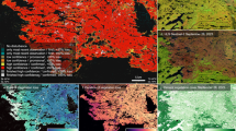 Areas where fire occurred multiple times in the same dataset, location, and year were flagged and harmonized using different criteria. LSMs often assume that disturbance is stand-replacing8,14, and repeated stand-replacing fire disturbances in the same year are not ecologically reasonable in this context51. We resolved these situations based on the degree of overlap between the polygons. Polygons with <10% overlap were both retained. This procedure uses a higher threshold compared to the earlier harmonization step where overlapping polygons in multiple different datasets were resolved (i.e., overlapping polygons in national and provincial data). That earlier step resolves slight differences in digitization and mapping between different datasets, whereas this step focuses on resolving overlaps within the same dataset that are not ecologically reasonable from the perspective of an LSM. Polygons with 10–80% overlap were assumed to represent the same fire event and were joined together into a single larger polygon. For polygons that overlapped by over 80%, the polygons were treated as duplicate data, and the smaller fire was temporarily retained. These were cases where multiple smaller polygons overlapped a single large polygon, so we sought to preserve these more detailed smaller polygons, which likely represented a higher accuracy mapping of the same fire event. Therefore, if the smaller polygons covered >90% of the larger polygons’ area, the smaller polygons were retained. However, if the smaller polygons covered <90%, they were joined to the larger polygon. We then created a “Fire ID” polygon attribute, which identified polygons from the same fire event (Supplementary Table 1). After harmonization, multipart polygons and nearby polygons, which could be reasonably assumed to be part of the same fire event (within 5 km), were assigned the same Fire ID. If the final polygon was derived from multiple data sources, then a new field, “MultiPoly”, was added to each “Fire ID”, indicating the number of different polygons with the same “Fire ID” (Supplementary Table 1). Our analysis of the raw vector fire data strongly suggests it primarily captures stand-replacing fire events in areas with forested land cover. The vector harvest data was processed to ensure it was suitable in the context of an LSM. The vector harvest data was relatively sparse with no overlapping polygons, and as a result, no harmonization steps were applied to the vector harvest data. However, LSMs that simulate vegetation using an average individual and represent timber harvest are often only conceptually capable of representing clear-cut harvest8,42. Given the sparse nature of the vector harvest data (Fig. 2), we chose to pre-process the thinning polygons into a form suitable for such an LSM. We decided this approach was preferable to removing the records and potentially biasing the disturbance forcing toward underrepresenting harvest’s carbon cycling impacts on forests. We scaled polygons flagged as trimming or non-clear-cut harvest to an equivalent clear-cut area. Silvicultural thinning selects trees to be removed based on a variety of criteria (e.g., height, yield class) or based on a fixed pattern (e.g., every other row)60. Heavy thinning treatments can remove >30% of basal area, with some studies indicating removals as high as 64%61. Light and moderate thinning generally removes <30%62. We assume, based upon this literature, that non-clear-cut harvest removes a third of the trees in a stand, making it equivalent to a clear-cut area a third the size of the original polygon. Polygons indicating salvage cuts were not included in the harmonized dataset (<1% of all disturbed land). This was done because the majority of these data lacked information about the original disturbance agent. Post-fire salvage represents harvests of already disturbed land. Therefore, the majority of LSM modeling frameworks with stand-replacing disturbance will not be able to explicitly represent this process as any fluxes from this disturbance would already be implicitly included in the stand-replacing event8,14,42. Incorporating salvage following insect disturbance would require cataloging and harmonizing historical insect disturbance data. Finally, we excluded any polygons documenting other types of silviculture activity (i.e., site prep or planting). Our analysis of the raw vector datasets strongly suggests that they are limited to commercial harvest alone.