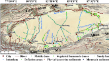 Factors affecting the particle size characteristics of the Kubuqi Desert are diverse and integrated. The patterns of sediment particle-size distribution are reflected by the mean particle size and sorting coefficient of the sediment, which in turn are controlled by the material composition of the source area, the history of desert formation, and the evolution of dune formation. Although there is some variation in the composition of the surface material for different deserts and for different individual dunes, in most deserts the sandy material has a particle size of fine to medium sand (mean particle size 1.60–2.65 φ), with excellent to medium sorting (sorting coefficient 0.26–0.55 φ)36. The major mobile deserts in China, such as the Badanjilin Desert and the Tengger Desert, also have mean particle sizes that fall within the above ranges. The exception is the Taklamakan Desert, the largest mobile desert in China, in which the mobile dune surface material is dominated by very fine and fine sand (mean particle size 2.0–4.0 φ)43.