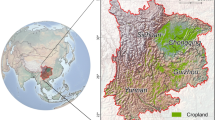 Based on the ratios of irrigation and fertilizer application, each crop cultivation was categorized into three production systems: irrigated, high-input rainfed, and low-input rainfed. The proportion of irrigated crop for each 5-year node was extracted from the ISIMIP3a dataset44. The proportions of high-input and low-input systems are determined based on actual crop fertilizer application statistics compared with the recommended amounts. The shares of irrigated system for crops \(({H{A}_{{Ratio}}}_{j,t,p}^{{irrigat}{ion}})\) are determined by averaging the gridded values at the prefecture level. Owing to the lack of crop fertilizer application data at the prefecture level, this study assumed that all prefectures within the same province share the same average fertilizer application ratios. The details of the crop production system classification are as follows.