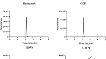After thawing, 100 µl of lysate was treated with Benzonase nuclease (1 µl, Sigma-Aldrich) for 1 h at 37 °C and centrifuged at 24.000 × g for 20 min (20 °C). The supernatant was subjected to buffer exchange using polyacrylamide spin desalting columns (7 K MWCO, Pierce) equilibrated with 100 mM sodium acetate, pH 5.5. Samples were oxidized with 10 mM sodium (meta)periodate (Sigma-Aldrich) for 30 min at room temperature in the dark. Sodium periodate was removed by a second buffer exchange using polyacrylamide desalting spin columns equilibrated with PBS pH = 7.5. Oxidized sugar groups were immobilized on 50 µl (bead volume) Ultralink Hydrazide Gel (Pierce) overnight at room temperature with aniline (Sigma-Aldrich) as catalyst. Next day, non-glycoproteins were removed by washing the resin three times with the following buffers: 1% SDS/PBS, 8 M Urea in 100 mM Tris/HCl pH = 8.0, 1 M NaCl in 100 mM Tris/HCl pH = 8.0, 20% CH3CN/10 mM Tris/HCl pH = 8.0. After the second Urea wash, proteins were reduced by addition of 100 mM DTT in 8 M Urea Tris/HCl pH = 8.0 (60 min, room temperature) and alkylated with 50 mM Iodacetamid in 8 M Urea/100 mM Tris/HCl pH = 8.0 (30 min, room temperature in the dark). After washing, the resin was equilibrated with 50 mM NH4HCO3 and re-suspended in 30 µl 50 mM NH4HCO3 containing 2 µg sequencing grade trypsin (Pierce) and digested on-resin over night at 37 °C. Trypsin-released peptides were collected and dried. The resin was further extensively washed (as described above) and resuspended in 50 mM NH4HCO3 containing 0.5 U PNGase F. After enzymatic release of N-glycopeptides (37 °C, overnight) deglycosylated peptides were collected and dried.