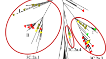 Nucleotide sequencing was performed on an ABI 3500 genetic analyzer (Life Technologies, Grand Island, NY, USA) using the ABI BigDye Terminator v3.1 Cycle Sequencing Kit (Life Technologies), following the manufacturer’s instructions. The sequencing primers were M13F (5′–TGTAAAACGACGGCCAGT–3′) and M13R (5′–CAGGAAACAGCTATG ACC–3′). Sequences were assembled using the SeqMan program of the Lasergene Package (DNASTAR, Inc.; Madison, WI, USA). Nucleotide alignments and a phylogenetic tree were constructed using MEGA version 5.1 (The Biodesign Institute, Tempe, AZ, USA) by the neighbor-Joining method with 1,000 bootstrap replicates.
