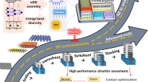 Various approaches have been proposed to overcome these problems4, 5. A possible solution is to adopt new materials/structures that can have compact size, high mobility, and low contact resistance. The rapid development in two-dimensional (2D) materials opens up unprecedented possibilities to realize novel functional devices6. As the thickness of 2D materials is only of a few atomic layers, devices based on such materials would have the advantages of compact sizes and easy integration. Graphene, the first 2D material produced experimentally, has many attractive properties such as ultrahigh carrier mobility. However, its zero bandgap is not suitable for logical devices. Until now, several semiconducting 2D materials have been experimentally realized. Among them, MoS2 has a suitable bandgap for electronic device applications. A FET based on single layer MoS2 has been demonstrated7 and its integrated circuits have been manufactured in the laboratory8. Other members in this transition metal dichalcogenide (TMDC) family have also been investigated. However, their carrier mobilities are not competitive with those of silicon and other conventional semiconductors4. Moreover, most of the 2D materials are intrinsically of n-type and p-type 2D materials are rare, which hinders the realization of p-n junctions based on the 2D materials.
