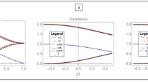The only difference between the first line and second line in Eq. (16) is also in the last term, which are −2|αβ| (n − 1) and −\(2|\alpha \beta |\sqrt{({C}_{{l}_{1}}({\rm{\Phi }})+1)({C}_{{l}_{1}}({\rm{\Psi }})+1)}\) respectively. This comparison is dimension dependent as shown in Fig. 2. Note that since a measure of coherence is nonnegative, we compare the expressions in Eq. (16) and choose the maximum value as the lower bound.