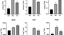 To explore the possible role of NO in the alleviation of AsIII toxicity, we focused on expression patterns of stress responsive genes. The different sets of stress responsive genes such as glutathione S-transferases (GSTs), glutaredoxins (GRXs), cytochrome P450s, heat shock proteins (HSPs), and peroxidases (PODs), were found to be significantly modulated at both time intervals (Fig. 5C–F; Supplementary Table 4). Interestingly, most GSTs were more up-regulated in the AsIII + SNP treatment compared to the AsIII treatment at both exposure durations. The Os03g0283200 (OsGSTL1) and Os03g0283100 genes (OsGSTL2) were more up-regulated in the AsIII + SNP treatment on 4th day in comparison to the control, indicated their key role in heavy metal tolerance and detoxification34, 35. Another set of stress-related genes involved in glutathione biochemistry such as OsGRX9 (Os02g0618100) and OsGRX4 (Os01g368900) were also significantly up-regulated in the AsIII + SNP treatment on 12th day, suggesting their protective role during As stress. Recent studies also elucidated that the OsGRX9 and OsGRX4 genes rendered tolerance against AsIII toxicity by modulating aquaporins expression and maintained S-glutathionylation and GSH content36, 37. Higher expression of cytochrome P450 (Os08g0105700, Os01g0627400 and Os02g0569900) genes were observed in the AsIII and AsIII + SNP treatments at both time intervals. Moreover, most of the genes related to the peroxidase family were up-regulated in the AsIII + SNP treatment at both exposure durations (Supplementary Table 4). The three HSPs, OsHSP17, OsHSP18.0-CII, and OsHSP26 (Os01g0136200, Os01g0184100 and Os03g0245800) genes were significantly up-regulated up to 18.2, 20.6 and 17.4 fold, respectively in the AsIII + SNP treatment, and 16.7, 19.2 and 15.6 fold, respectively in the AsIII treatment, in comparison to the control on 4th day. Our results indicated that NO-mediated reduction in ROS content during AsIII stress (Fig. 2B), and that NO modulated expression behavior of stress related genes such as GSTs, GRXs, HSPs and PODs might be a strategy to cope with As toxicity by maintaining glutathione biochemistry and redox potential in the cell26.
