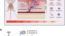 Injury was induced in three-month-old (“young group,” n = 30) and 20-month-old (“adult group,” n = 16) mice. The young group consisted of either FVB (n = 15) or BALB/c (n = 15) male mice and the adult group consisted of an FVB group of male mice. Acute skin injury was induced as reported previously, with modifications45. Mice were anesthetized with isoflurane and their backs were shaved. A sterile filter paper of 0.5 cm2 was soaked in 12.06 N HCl (Merck) for one minute and applied at the dorsolateral side of the neck for one minute. Two wounds were induced on both sides of each animal. MSCs were unilaterally transplanted, with the other site serving as a control. Injured animals were kept in separate cages with access to food and water ad libitum.