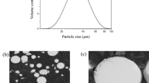 Hardness of the coatings was measured using a micro-indenter with the load of 300 g and a dwell time of 10 s on as-polished cross-sectional surface of the coatings. At least 10 measurements were repeated for each sample to ensure the data repeatability. The toughness of the coatings was evaluated by impact test, the merit of this technique over others (such as nanoindentation) is that the average toughness of the whole sample can be evaluated. Impact resistance of the coatings was measured on a home-made drop-weight impact tester, wherein a steel tup with a hemispherical head (16 mm diameter) and an overall weight of 1.8 kg was dropped down from 120 cm height (corresponding to 21.2 J impact energy) onto the as-sprayed coatings13. The stress distribution in the coatings upon impact was simulated by finite element method (FEM) with the ABAQUS software. A two dimensional axis symmetric model with the z-axis coincident to loading direction was constructed. The model consists of monolithic amorphous coating and the composite coating reinforced with carbon particles in the same thickness of 400 μm. The samples are assumed to be loaded by a steel ball with a velocity of 1.5 m s−1 and to be fixed in the bottom, just imitating the real condition. The interface between coating and substrate is regarded as prefect bonding without delamination. The amorphous carbon phase is regarding as spheres with an average radius of ~100 μm and homogeneously distributed in the amorphous matrix with prefect bonding.