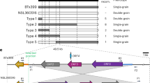 There was no strong statistical evidence of a genetic interaction between Dw2 and any of the other loci from the multiple-QTL mapping (MQM) analysis (Supplementary Table S1). For the best model for each phenotype, the only phenotype that included interactions in the model with the highest LOD is the length of internode 7. There are two interactions in this model, one between a QTL on chromosome 5 and Dw3 (chromosome 7 at 59.8 Mb) and another between a QTL on chromosome 1 and a QTL close to Dw3 (10.7 cM from Dw3 at 61.2 Mb) (Supplementary Table S1). The composite multiple-QTL model included both interactions and revealed interesting trends between the internode length traits with internodes further from the peduncle having better support for the two interactions (Supplementary Table S2, Supplementary Fig. S3). Additionally, composite model analysis clarified the effects of the two QTL on chromosome 6. Dw2 affects the length of internodes 1–6, but starting at internode 4 and continuing through internode 7 the QTL at ~49 Mb on chromosome 6 also affected internode length (Supplementary Table S2, Supplementary Fig. S3).