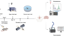 Rats in the CUMS, T1 + CUMS and T2 + CUMS groups were exposed to CUMS, the procedure of which was designed according to previous studies with some modifications59. Rats were kept in a single cage and underwent 28 days of CUMS. The following stressors were used: food deprivation (24 hours), water privation (24 hours), inversion of day/night light cycle (light on in the night and light off in day time), wet bedding (200 ml of water added to 300 g sawdust bedding), clipping the tail with forceps (1 min, the upper 1/3 of the tail), forced swimming (4 °C cold water for 6 min), and electrical stimulation with a voltage of 30–60 V, current of 1 mA and frequency of 2 Hz. The stressors were applied in a completely random order to produce unpredictable mild stress every day.