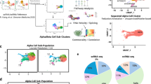 Pancreatic islets were obtained from three non-diabetic Singaporean Chinese subjects from the LKCMedicine Islet Isolation Facility that obtains human pancreata through the Singapore National Organ Transplant Unit (Supplementary Table 1). Informed consent was obtained from all subjects, all methods were carried out in accordance with relevant guidelines and regulations and the study was approved by the Institutional Review Board of the Singapore National Organ Transplant Unit (#IRB-2013-09-005). Islets were cultured for 3 days in complete CMRL-1066 media prior to being handpicked under a stereomicroscope for both functional assay (GSIS, Glucose Stimulated Insulin Secretion) and scRNA-seq studies. Islets with hypoxic cores were discarded. Subsequently, handpicked islets were dissociated into single-cells using Accutase® Cell Detachment Solution (Sigma Aldrich, St.Louis, MO, USA) and re-suspended in complete CMRL-1066 media. For GSIS, islets were incubated in 3 mmol/L glucose for one hour before being placed in a perfusion chamber and exposed to 3 mmol/L glucose (Low Glucose) for 10 minutes followed by 16.7 mmol/L glucose (High Glucose) for 10 minutes. These studies confirmed that islets used in this study exhibited normal insulin secretion profiles (Supplementary Table 1).