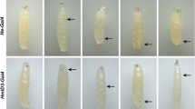 To generate positive Pc-null homozygous clones45, we adopted the FRT2APcXT109, which was crossed with hs-Flp, tubGal4, uas-GFPnls; FRT2AGal80. Crosses were maintained at 25 °C. Adult male flies were collected 0–2 days after eclosion and heat shocked for two rounds of 30-min heat shock at 37 °C and 1-hour rest at 25 °C. After final heat shock, flies were returned to 25 °C and dissected on 15 days ACI.