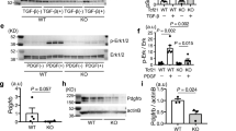 Pathologically, peritoneal fibrosis is characterized by accumulation of collagen-producing fibroblasts and excessive deposition of extracellular matrix that disrupts normal peritoneal architecture and homeostasis6, 7. Expansion of the collagen-producing fibroblast pool is a critical component of the development of peritoneal fibrosis, but the molecular mediator(s) driving this expansion remain to be fully elucidated. Long-term exposure to PD fluid also induces angiogenesis in the peritoneum, and the inhibition of angiogenesis has been reported to ameliorate peritoneal fibrosis, suggesting that angiogenesis may also be an important step for induction of peritoneal fibrosis8,9,10. Better identification of the mediator(s) driving fibroblast expansion and angiogenesis in this context will hopefully identify new therapeutic targets for peritoneal fibrosis, which is generally refractory to currently available pharmacological therapies.