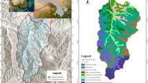The selected small watershed of Pailugou is located at the central north edge of the Qilian Mountains (100°17′E, 38°24′N), and close to Zhangye City, Gansu province (Fig. 10). Its total area is 2.74 km2, with an elevation range of 2642–3794 m a.s.l.. Based on the weather station located at the elevation of 2650 m a.s.l. and close to the outlet of this small watershed from 1994 to 2003, the mean annual precipitation is 368 mm while the mean annual air temperature is 0.5 °C57. About 60% of the annual precipitation occurs in the summer period from July to September18. Permanently and seasonally frozen soils are widespread at the middle and higher elevation ranges in the small watershed. The main parent material is calcareous rock. The main soil type is gray coarse soil, with a coarse texture, an intermediate organic matter content, and a pH range of 7–8.