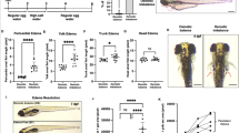 Microangiography was performed by subcutaneously injection of Low-molecular-weight rhodamine-dextran to visualize 3-dpf Tg (fli1a:EGFP) embryos45. Lymphangiography was performed by subcutaneously injection of high-molecular-weight -FITC-dextran to visualize 5 dpf Tg (flk1: mcherry) embryos46.
