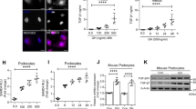 Having demonstrated that GR-signalling was intact in human podocytes, we investigated protective effects of prednisolone, following podocyte injury without the involvement of immune cells. We used Electric Cell-Substrate Impedance Sensing (ECIS)19 and the well-characterized puromycin amino nucleoside (PAN) model of podocyte injury20, 21. We demonstrated that well-defined actin fibres apparent in the vehicle-treated podocytes were lost in podocytes treated with 5.0 µg/mL PAN for 24 hours (Supplementary Figure S1). Furthermore, the resistance across a monolayer of podocytes treated with PAN alone markedly decreased, signifying podocyte injury (Fig. 1e). However, podocytes treated with prednisolone alone showed higher resistance than vehicle-treated cells. Interestingly, Gc exposure provided some protective effect against PAN-injury, as demonstrated by the higher resistance recorded for PAN/Gc cells compared to cells treated with PAN alone.