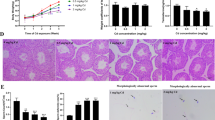 Testes were homogenized and then were lysed with radio immunoprecipitation assay (RIPA) buffer (Bocai Biotechnology, China) to obtain total proteins. The protein concentrations of samples were measured with BCATM Protein Assay Kit (Takara, Japan) according to the manufacturer’s instruction. Aliquot of 50 μg of proteins were electrophoresed on 10% polyacrylamide gels containing sodium dodecyl sulfate and transferred onto nitrocellulose membranes. The membranes were blocked with 5% non-fat milk in Tris-buffered saline tween-20 buffer for 1 h. Then, the membranes were incubated overnight at 4 °C with primary antibodies against the following antigens: LHCGR, STAR, CYP11A1, 3β-HSD1, CYP17A1, 11β-HSD1, FSHR, DHH, and ACTB (listed in Supplementary Table 1). The membranes were then washed and incubated with HRP-conjugated anti-rabbit or anti-goat IgG secondary antibody (1:5000, Bioword, USA) for 1 h at room temperature and washed 3 times. The immunoreactive bands were visualized by chemiluminescence using a kit (ECL, Amersham, Arlington Heights, IL). The intensity of band was analyzed with ImageJ software.