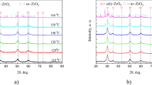 Powder X-ray diffraction (XRD) patterns of the as-prepared HfO2 nanostructures were recorded using a Philips PANalytical X’Pert X-ray diffractometer at 40 kV and 40 mA with Cu-Kα radiation (0.15418 nm). A HRTEM (JEOL JEM-2100) equipped with a STEM for EDX spectroscopy was employed to study the morphologies, crystallinities, and size distributions of the materials. Micro-Raman spectroscopy (JASCO, NRS-3100) with a 532 nm solid-state primary laser as an excitation source was used to perform the phonon vibrational study at room temperature. XPS measurements were performed on a Kratos AXIS Ultra device with an Al monochromatic X-ray source (1486.6 eV). The PL spectroscopic measurements were taken using a PerkinElmer (LS 45 Fluorescence Spectrometer, 230 V) instrument at room temperature. UV absorbance measurements were performed on a Shimadzu UV-2450. The thermo-stabilities of the materials were evaluated using a Perkin Elmer TGA (4000) at a heating rate of 10 °C/min under a N2 atmosphere over a temperature range of 50–900 °C. FTIR measurements were performed using a Perkin Elmer Spectrum 100 FTIR spectrophotometer, adopting the KBr pellet method.