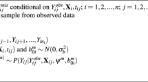 Suppose n independent observations \(({Y}_{1i},{Y}_{2i},{G}_{i}^{\tau })\) are available for (Y 1, Y 2, G τ), where G i = (g 1i , \(\cdots \), g pi )τ, i = 1, \(\cdots \), n. Based on the foregoing assumption, (Y 1i , Z i )τ are independently distributed as a bivariate normal distribution with mean vector \({({\alpha }_{0}+{G}_{i}^{\tau }\alpha ,{\beta }_{0}+{G}_{i}^{\tau }\beta )}^{\tau }\). The conditional distribution of Z i given Y 1i is normal with mean \(({\beta }_{0}+{G}_{i}^{\tau }\beta )+({Y}_{1i}-{G}_{i}^{\tau }\alpha -{\alpha }_{0})\rho \frac{{\sigma }_{2}}{{\sigma }_{1}}\) and variance \({\sigma }_{2}^{2}\mathrm{(1}-{\rho }^{2})\). By some algebra, for j = 1, \(\cdots \), k, and i = 1, …, n, it can be obtained that