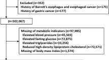 The comprehensive health-screening program included anthropometric measurements, endoscopy, and serum biochemical measurements, as well as an epidemiological questionnaire on smoking habits, alcohol consumption, physical activity, medication history (including current use), personal medical history, and family history of cancer20. Personal medical history included diabetes mellitus, hypertension, dyslipidemia, cardiovascular disease, malignancy, colorectal neoplasia, and surgical history. Medication history included current and regular use of aspirin. Smoking status was divided into three groups: never, former, or current smoker. Alcohol consumption status was divided into mild (≤10 g/day) and modest (>10 g/day). Regular exercise was defined as exercising three or more times per week with moderate intensity activity. Weight and height were calculated to the nearest 0.1 kg and 0.1 cm, respectively, using an Inbody 720 machine (Biospace, Seoul, Korea). The participants’ weights and heights were measured with light clothing and bare feet. BMI was calculated as weight in kilograms divided by height in square meters (kg/m2). Blood pressure was measured in the seated position after > 5 minutes of quiet rest using an automated blood pressure monitor (Dinamap PRO 100; GE Healthcare, Milwaukee, Wisconsin).
