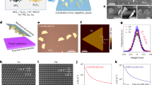 where q is the electron charge, ħ is the reduced Planck’s constant, m * ox is the electron effective mass in the oxide layer, ϕ b is the barrier height at the semiconductor–oxide interface, and F ox is the electric field across the oxide21. The barrier height was obtained by using the valance band structure of XPS data and Reflective Electron Energy Loss Spectroscopy (REELS) spectra (see Supporting Fig. S2). Based on the reported values in the F-N tunneling equation, we used 0.1 ± 0.03 for m * ox 22 and 3.43 eV for ϕ b in HfO2/InSb. After PDA at 400 °C, the sample initially broke down because the deterioration of interfacial characteristics occurred by the dissociation of InSb and the elements’ diffusion through the film. Furthermore, two tunneling effects associated with F-N tunneling as well as direct tunneling through the trap may be included in the I–V curve. Based on the reported data for SILC, the defect states can affect the leakage current in two ways. The first is trap-assisted tunneling because tunneling electrons captured by the trap states are emitted to the gate metal. The second is percolation caused by electrons hopping to sequentially lower energy trap states (multi-trap path) before emission to the gate metal by tunneling23,24,25. These two processes, which are closely related to the defect states, can induce the leakage current, which critically degrades device operation. In particular, given the gradually increased leakage current level as the applied stress increases in HfO2/InSb, defects can be generated continuously through the whole oxide in HfO2/InSb. Therefore, this characteristic SILC indicates the increase in leakage current through the multi-trap path: The percolation process more dominantly affects the increased leakage current, compared with the trap-assisted tunneling process. However, in HA/InSb, a reversible leakage current was maintained within a ramp voltage range from 0.5 to 4 V with a 0.05 V ramp step, as shown in Fig. 7c. Unlike HfO2/InSb, when an electrical stress >4 V was applied, an F-N tunneling current in HA/InSb was not observed in the enhanced current region: The SILC of HA/InSb could not be fitted using the J FN equation. In addition, an F-N tunneling current in HA/InSb was not observed after PDA at 400 °C. When an electrical stress >4.0 V was applied, the leakage current followed different curve shapes, compared with the case of F-N tunneling in Fig. 7a. The different curve shapes for the SILC are related to the defect states caused by electrical stress: i.e., quantum mechanical tunneling and trap-assisted tunneling can occur through the generated defects. Since the tunneling processes are more related to the bulk defects, not to the interfacial defects, the increase in border trap density well supports the change in the SILC curve. Another interesting finding is that, after PDA at 400 °C, the reversible leakage current was maintained up to the applied stress voltage of 3.1 V, as shown in Fig. 7d: i.e., no degraded characteristics of current shape up to the applied stress voltage of ∼3.1 eV are observed. Comparing the leakage current before PDA at 400 °C to that after PDA at 400 °C, we see that the line shapes of the leakage current levels over the applied stress voltage of ∼4.3 eV in Fig. 7c are similar to those in Fig. 7d. Therefore, the results indicate that the cause for the leakage path after the electrical stress before PDA is similar to that after PDA in HA/InSb. As a result, in addition to the advantage of the larger barrier height of Al2O3 compared to that of HfO2, the effective reduction of the leakage current level using an Al2O3 passivation layer is mainly caused by the control of the interfacial reaction and elemental diffusion. Finally, we can effectively improve the thermal stability of a MOS capacitor by using an Al2O3 passivation layer.
