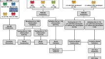 The 231-plex MRM-MS assay was applied to the individual serum samples. Averages of the technical triplicates were used to construct a more precise multi-marker panel in the training set. The performance of the resulting multi-marker panel was evaluated by analyzing the test set samples with a single measurement (Supplementary Figs S1 and S2). We obtained the relative abundance (fold-change and adjusted P) of 124 proteins using the MSstats package29 in R language (Supplementary Table S2). Then, volcano plots were generated for the proteins in LC versus HCC and HCC versus Recovery in the training and test sets (Supplementary Fig. S3). The overall scheme of the study is presented in Fig. 1.