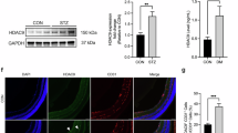 An assay to evaluate tube formation by endothelial cells was performed as previously described48. Briefly, HRECs were incubated with Hcy (20, 50 and 100 μM) at 37 °C overnight in Matrigel-coated culture plates. VEGF 50 ng/ml (BD Bioscience) was used as positive control. Tube formation was observed using an inverted microscope. The images were captured with a digital camera attached to the microscope (ZEISS Axioverst 40 CFL). The degree of tube formation was further quantified by measuring the total length of tube-like cells using ImageJ software.