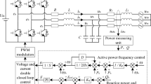 In order to make the inverter of a distributed generating unit present the characteristics similar to synchronous generator, in recent years, virtual synchronous generator(VSG) control technology based on the synchronous generator electromechanical transient analysis theory has received the widespread attention of scholars around the world. Literature12 put forward the concept of VSG for the first time, synchronous generator model was used to control the output current of the inverter of a distributed generating unit. Literature13 proposed a voltage source type VSG control strategy, which can operates in two modes of interconnection and autonomy. It further improves the frequency stability of the system. Literature14 introduced the partial linear model of the synchronous generator into the conventional active-frequency droop control. On the basis of the conventional droop control, it effectively simulated the synchronous generator’s rotation inertia, damping, and the characteristics of primary frequency control. Literatures15,16,17,18 made a deep research on the rotor inertia adaptive control strategy of the virtual synchronous generator, and it has greatly improved the dynamic response speed of the conventional virtual synchronous generator. In previous research19, a virtual mechanical phase is established using the swing equation with simple damping term. Then it was verified that VSG system enhance the grid stability. A virtual synchronous generator with the functions of P-Q control and V-f control in microgrid is proposed in ref. 20. The core algorithm of VSG is to employ an electromechanical transient mathematic model of round SG. In previous research21, a reactive power control method was developed to keep the sending end voltage at the specified rated value and operate with the same control scheme whenever it is connected to the grid or operated in intentional islanding mode. In addition, many other literatures have carried on the different research. Compared with conventional droop control strategy, the results show that the VSG has a great advantage22,23,24,25.