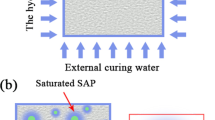 They are also used to mitigate autogenous shrinkage in systems with a low water-to-binder ratio14,15,16,17,18. As, upon hydration of cement, the capillary water will be consumed followed by a reaction with the more strongly bound gel water, there will be self-desiccation leading to autogenous shrinkage. By internally or externally curing the material, this autogenous shrinkage can be prevented and the hydration can be maximized19. The SAPs can retain water, act as water-filled inclusions (macro pores) and release the water to reduce self-desiccation shrinkage during hardening. This internal curing will maintain the internal relative humidity. Due to the release of water by the SAPs, the SAPs decrease in size and afterwards a macro pore remains with the dry remnant of the SAP. When (external) water is available again, the SAP is able to swell to full extent.