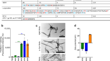 The data were analysed using GraphPad Prism 6.0 software (CA, USA) by an independent Student’s t-test, one-way and two-way ANOVA and Bonferroni’s post hoc test analysis. The values of IC50 and median survival were determined using Prism version 6.0 for Windows (GraphPad Software, CA, USA). A p value < 0.05 was considered statistically significant. At least three independent experiments were done for studies involving C. elegans. For mouse main experiments, on the basis of advice from a medical statistician and our team’s experience of behavioral studies, 12 were used for each group of mice, Vehicle and p17, providing the minimum number to show up significant data. Column statistics were used in the probe trial of the MWM.