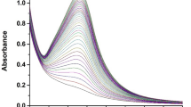 Reducing power of varying concentrations of Ag NPs (40, 80, 120, 160, and 200 μg/ml) suspended in 1:1 methanol and water were determined by the method of Oyaizu et al.42. Different reaction mixtures each containing 1.0 ml of the chosen concentration of the sample, 2.5 ml of 0.2 M phosphate buffer (pH 6.6) and 2.5 ml of 1% potassium ferricyanide were prepared and incubated at 50 °C for 20 min in a hot water bath. Then, 2.5 ml of 10% trichloroacetic acid was added to the reaction mixture and was centrifuged at 3000 rpm for 10 min. Finally, 2.5 ml of the upper layer of the solution was mixed with 2.5 ml of distilled water and 0.5 ml of ferric chloride. Absorbance of the resulting solution was measured at 700 nm against a blank containing all the reagents except the sample. A stronger absorbance is indicative of higher reducing power.