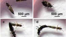 Inconsistent with the lethal attack (e.g., decapitation) that occurs in Melittobia species31,49,50,51, a single attack cannot lead to death of an individual in A. disparis. We found that the frequency of attack by others was higher for injured males than for uninjured males; in addition, even dead males were sometimes attacked. These results suggest that injured males may be vulnerable to groups and to frequent and repeated attacks by competitors. One possible reason for these findings is that the capacity of injured males (and dead males) to evade attack is decreased due to reduced mobility. Alternatively, weak individuals may generally receive more aggression within a range of contexts; further work is needed to test this possibility. Death from combat in A. disparis appears to have been the result of the cumulative effects of injuries sustained from frequent and repeated attacks.