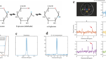 To date, only a restricted number of hyperpolarized 13C MRS brain studies have been performed7, mostly using pyruvate as substrate. Three metabolic products, lactate, alanine and bicarbonate8,9, were observed following the injection of [1-13C]pyruvate while glutamate and citrate were detected using hyperpolarized [2-13C] pyruvate10. Following the infusion of hyperpolarized [1-13C] acetate, it was also reported that the TCA cycle intermediate 2-oxoglutarate can be observed in the rat brain11. Unlike the carbonyl carbon in pyruvate, glucose carbons have very short longitudinal relaxation time (T1) (~1–2 s) because of the dipolar-dipolar relaxation of the 13C nuclear spins by the protons present in the molecule. In the perdeuterated [U-2H7, U-13C6]-D-glucose, the intramolecular dipolar-dipolar 13C-1H relaxation is eliminated, which extends the T1s of the glucose carbons to ~10 s. It was demonstrated that [U-2H7, U-13C6]-D-glucose may be used as a hyperpolarized 13C MRS probe to observe glycolytic reactions12,13,14,15. Hyperpolarized [U-2H7, U-13C6]-D-glucose and fructose as nutrients allowed collecting real-time metabolic data from the appearance of downstream metabolites in glycolysis and central carbon metabolism in Escherichia coli and Saccharomyces cerevisiae cells. Perdeuterated [U-13C6]-D-glucose was also used to successfully probe glycolysis in human T47D breast cancer cells.
