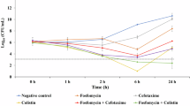 One hundred and thirty healthy Cobb broilers at the age of thirty-day-old weighing 1.0–1.5 kg were equally allocated into two groups (group A and group B) and reared in separate rooms with ad libitum access to drinking water and antibiotic-free feed. After acclimatization for 7 days, each chicken in group A was inoculated with 108 CFU Salmonella Typhimurium CVCC541 by gavage intubation. Group B was maintained as healthy control. Twenty-four hours after infection, each chicken of the two groups was administered an oral bolus of enrofloxacin (Baytril 10% oral solution) at the clinically recommended dosage of 10 mg/kg b.w. Five chickens from each group were euthanized to collect blood and intestinal content samples before medication and at time points of 0.25, 0.5, 0.75, 1, 1.5, 2, 3, 4, 8, 12, 24 and 48 h post medication. All the samples were assayed for enrofloxacin and ciprofloxacin by the high pressure liquid chromatography (HPLC) method with fluorescence detection essentially as described previously45,46. Enrofloxacin concentration-time data in serum and intestinal contents were analysed using the WinNonlin regression programme (version 5.2.1, Pharsight Corporation, Mountain View, CA, USA). Data for serum and intestinal contents were submitted to non-compartmental analysis using the statistical moment approach described by Perrier and Mayershhn47. The liner trapezoidal rule was used to calculate AUC values and area under the first moment curve (AUMC). The mean residence time (MRT) was determined as AUMC/AUC. Binding ratio of enrofloxacin to intestinal contents was determined by ultra-filtration method48.