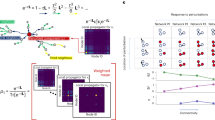 All simulations were performed using MATLAB R2014. In Step 3 we take \(k\,=\,4m\); simulations without upper limit on k show sufficient convergence after only m rewirings. We simulate 100 independent trials for each pair \((\tau ,p)\). In analysing the networks generated by the algorithm all measures used are provided by the Brain Connectivity Toolbox 28. Note that for \(\tau \gg 1\) the heat kernel approaches the matrix \(\frac{1}{{\bf{\text{1}}}D{{\bf{\text{1}}}}^{{\rm{T}}}}{D}^{1/2}{{\bf{\text{1}}}}^{{\rm{T}}}{\bf{\text{1}}}{D}^{1/2}\) and so rewiring biases toward high degree vertices, hence, adaptive rewiring approaches a process of preferential attachment17,18.