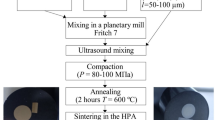 The amount of each element initially present in the IN718 powders was measured using inductively coupled plasma–atomic emission spectroscopy (ICP–AES, Optima 7300DV, PerkinElmer, USA). The concentration of oxygen and nitrogen in the IN718 (and in the BN nanosheets) was determined using an O/N analyzer (ON–900, Eltra GmbH, Germany)48,49,59. The density of the samples was measured using the Archimedes method. The surface morphology of the precursor micropowders and nanosheets, and of the alloy and composite products, was studied using a scanning electron microscope (SEM, JSM–5800, JEOL, Japan). The particle size in the powders was analyzed using a particle-size analyzer (LS13 320, Beckman Coulter Inc., USA) that included a laser-induced scattering measurement detector. Electron diffraction patterns and elemental composition were obtained using selective area electron diffraction (SAED) and X-ray electron diffraction spectroscopy (EDS) on a transmission electron microscope (TEM, JEM–ARM200F, JEOL, Japan). The crystal structure of the micropowders, nanosheets, alloy, and composites was determined using an X-ray diffractometer (XRD, D/Max–2500VL/PC, Rigaku International Corp., Japan) at 40 kV and 250 mA over the angular range (2θ) 20–80°. An X-ray photoelectron spectrometer (XPS, Quantera SXM, ULVAC–PHI, Japan) and XPSpeak 4.1 software were used to obtain more detailed information about the compounds in the BN-reinforced IN718 composite and the BN nanosheets. The Vickers hardness of the alloy and composites was measured using a hardness tester (HM–211, Mitutoyo, Japan) at 5.0 N loading and 12 s indentation time. The compressive test was conducted using a universal compression tester (2000KPX, Instron, USA) with a load of 2000 kN. The thermal behavior of the BN nanosheets, IN718 alloy, and BN/IN718 composites was measured using a differential scanning calorimeter (DSC, Q600, TA Instruments, USA) under an Ar gas flow while heating at 10 K/min. A dry sliding-wear test was conducted in a ball-on-disk tribometer (Ball/Pin on Disc, J&L Tech Co., Ltd., Republic of Korea) in air at room temperature. The surfaces of the specimens were polished prior to the wear test. A tungsten carbide ball with a diameter of 5.4 mm was used as the counterface material under a test load of 5.0 N. The friction unit was rotated at 200 r/min for 2400 s. The coefficient of friction (COF) of the specimens was recorded during the wear test.