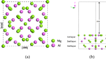We used spin polarized density functional theory as implemented in the Vienna ab-initio simulation package (VASP)36. The generalized gradient approximation (GGA) was introduced for the exchange and correlation effects at Perdew Burke Ernzerhof (PBE)37 and the potentials of the atoms were specified by the projected augmented wave (PAW)38 method. The energy cut-off is taken equal to 450 eV and the Brillouin zone integration within the Monkhorst Pack scheme with 5 × 5 × 7 k-point mesh in the reciprocal space is considered. For long-range Van der Waals interaction the Grimme’s method (DFT-D2) was used with PBE functional (denoted as PBE + D)39. All the structures were optimized until the total energy converged to less than 10−5 eV per atom and the maximum force converged to lower than 0.001 eVÅ−1. The barrier energy calculations were done by climbing image nudged elastic band (cNEB) method40. The climbing image is a small modification to the NEB method in which the highest energy image is driven up to the saddle point. The cNEB calculation was carried out by four intermediate images that connected between the initial and final states. For bulk based calculations we took (2 × 2 × 2) supercell and for surface calculations (2 × 2 × 1) supercell of MgH2 (110) plane with 15 Å vacuum along c-axis as the model geometry was used. For the bulk case, the amounts of doping considered here are 6.25% and for surface, the doping percentage is 4.17%. To check the stability of MgH2 (110) surface, we have used ab-initio molecular dynamics simulations. The NVT ensemble was used for varying the temperature range like 200 K, 400 K, 600 K and 700 K considering Nose thermostat41. For the equilibration, we used one thousand time steps with each step of 1fs long.