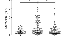 Complexes of MPO and histones in serum, a surrogate marker of NETs, were quantified using a MPO-Histone ELISA Kit (Cayman, MI, USA) according to manufacturer’s instructions. The results are expressed as ng/ml.