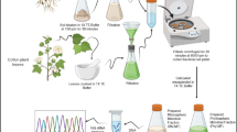 Plants of G. arboreum, variety Ravi, were grown in an insect-free glasshouse. G. hirsutum, variety CIM 496, plants were maintained in a separate glasshouse and were inoculated with CLCuD by allowing viruliferous whiteflies to feed on these plants. Severely CLCuD infected CIM496 branches were then used as scions to graft on Ravi plants. G. arboreum plants were grafted using a “bottle shoot” grafting method30,32. In this technique, a graft-scion is placed in a tube filled with distilled water to support plant growth at the higher temperatures maintained for this experiment (Fig. 1). The water in the tube was refreshed daily till the graft union between root stock and scion was established. The tube of water was removed at day 9 after grafting. The temperature of the glasshouse was maintained between 38–45 °C for day time and 25–30 °C for night time. The leaf tissue was collected from CLCuD symptomatic and asymptomatic plants at day 25 post graft infestation. Three biological replicates were processed independently.