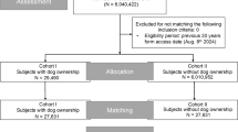 A recent Norwegian prospective cohort study within a subset of the HUNT study (n = 28,746 in adjusted analysis, 4,233 events) showed no difference in all-cause mortality between dog owners and non-owners (adjusted HR 1.00, 95% CI 0.91–1.09)29. Adjustments were similar as in our study, but stratification by family type was not investigated, which would have been interesting to compare to our results, as the single household stratum was where the largest protective effect sizes were observed. The differences in results from our study could be due to differences in the population studied (largely rural in the HUNT study), difference in the study design (cohort vs register-based), measurement of dog-ownership (questionnaire vs register) and time of exposure definition (baseline vs time-updated) or pure chance. Three other previous studies conducted within the Second and Third National Health and Nutrition Examination Survey (NHANES II-III) of 4,435 (44% dog owners), 5,903 (11% dog owners) and 3,964 (22% dog owners) individuals, respectively, reported no effect of dog ownership on all-cause mortality (adjusted HRs 1.00, 95% CI, 0.85–1.20; 1.17, 95% CI, 0.94–1.46; and 0.82, 95% CI, 0.51–1.34, respectively)30,31,32. Whilst statistical methods were similar to our study, these studies suffered from a high degree of incomplete follow-up (~50%) and small sample sizes, which do not apply to the present study based on comprehensive registers of the total population. Further, three smaller unrelated studies in the United States support an association of dog ownership with lower mortality after cardiovascular events14,16,33.