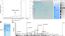Protein fractions were mixed with 5× sample buffer (312.5 mM Tris-HCl, pH 6.8, 50% glycerol, 5% SDS, 0.05% bromophenol blue, 100 mM DTT) before they were loaded onto a 10% tricine SDS-PAGE gel. The protein bands were stained with a Coomassie brilliant blue R-250 solution. The expression level, solubility, and purity of proteins were measured by means of ImageJ software (http://imagej.nih.gov/ij) and also quantified as in other studies19,20,21,22,23.