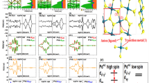 Inheriting the major 20-electron supershell closing 1S 21P 62S 21D 10 and highly symmetric geometry from the tetrahedral Au20, Au19Cr, Au19Mn, and Au19Fe are potentially stable species. Their dopant-dependent stability can be reflected through the comparison between corresponding binding energies per atom E b with that of Au20. The calculated average binding energy of Au20 is found as 2.25 eV, which is in good agreement with the previously reported values58. Whereas, E b of alloy species are slightly higher, that are 2.29, 2.30, and 2.31 eV for Au19Cr, Au19Mn, and Au19Fe clusters, respectively. Since the Au19M and Au20 systems have nearly identical geometries and similar E b values, it could be suggested that the incorporation of transition metal dopants tends to stabilize the gold host and the stability of Au19M system can be relatively comparable to that of the robust Au20. We further examine the bonding nature between the dopant and Au host by analyzing the electron localizability indicator (ELI-D)68. The ELI-D isosurface of Au19M clusters produced at the bifurcation value of 1.0 are presented in Fig. S1 in the Supplementary Information file (Supplementary Information: The electron localizability of ground-state Au19M clusters). No localization domain is observed in the region between the dopant and Au19 host, implying that the dopant likely connects with Au moiety via ionic and/or highly polarized covalent bonds. A similar picture was also reported for Re@Au11Pt and Ta@Au11Hg superatomic systems, in which the energy decomposition analysis (ETS-NOCV) is used to emphasizes the importance of electrostatic and covalent interaction between metal dopant and host in stabilizing clusters69. To measure the chemical stability of the clusters, we examine the energy gaps between the LUMO of the minority (beta) spin and the HOMO of the majority (alpha) spin \([{\delta }_{1}=-({\varepsilon }_{HOMO}^{alpha}-{\varepsilon }_{LUMO}^{beta})]\) and between the LUMO of the majority (alpha) spin and the HOMO of the minority (beta) spin \([{\delta }_{2}=-({\varepsilon }_{HOMO}^{beta}-{\varepsilon }_{LUMO}^{alpha})]\). These values suggest the required amount of energy for an electron to jump from the HOMO of majority (minority) spin channel to the LUMO of minority (majority) one. The larger gap means the less reactive and more stable clusters70,71,72. Table 2 lists the HOMO and LUMO energies for the majority and minority spin channels and the values of δ 1 and δ 2 calculated for the ground states. Both energy gaps δ 1 and δ 2 take positive values, again confirming the inertness of all studied clusters. Notably, Au19Cr has the largest gaps of δ 1 and δ 2, which means that it is the most stable and least reactive species compared to the others and can be assigned as a magnetic superatom. Among clusters with higher doping concentration, Au16M4 would be a promising system due to its potential as a giant magnetic and highly symmetric superatom. Although the dopant atom apparently prefers substituting one Au atom in the surface center of singly doped species, the situation for Au16M4 clusters could be more puzzling. It is worth to mention that the unique stability of the golden pyramid Au20 can be understood in term of a superatomic molecule Au16Au4, where its superatomic core Au16 binds with four vertex Au atoms42. This approach has been supported by the recent findings of the golden pyramid’s smaller sisters, the tetrahedral \({{\rm{Au}}}_{17}^{+}\) and \({{\rm{Au}}}_{10}^{2+}\). These two systems were found highly stable in form of Au13 and Au6 octahedral cores, respectively, and the other four gold atoms are above four their triangular faces37,73,74. In this scenario, Au16M4 and its smaller magnetic counterparts, \({{\rm{Au}}}_{13}{{\rm{M}}}_{4}^{+}\) and \({{\rm{Au}}}_{6}{{\rm{M}}}_{4}^{2+}\), might be considered as a core in −4 charge state and four vertex M atoms. A careful examination of this interesting issue is perhaps warranted for future research.